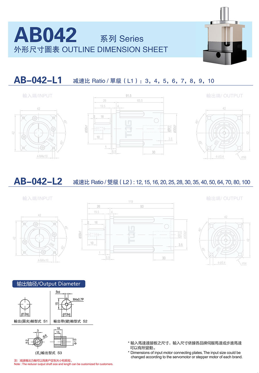 行星臂架与输出轴一体式结构确保最大耐扭力刚。 齿轮箱表面利用无电解镍处理,连接板采蓝色阳极处理,提高环境的耐受性和抗腐蚀能力, 最低的回程间隙。 高效率(95%)。 终生润滑。